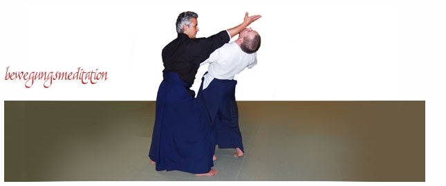 Schweigen, üben, atmen. Und tatsächlich sind diese drei Elemente der entscheidende Ansatz im Aikido in Bezug auf die Bewegungsmediation.